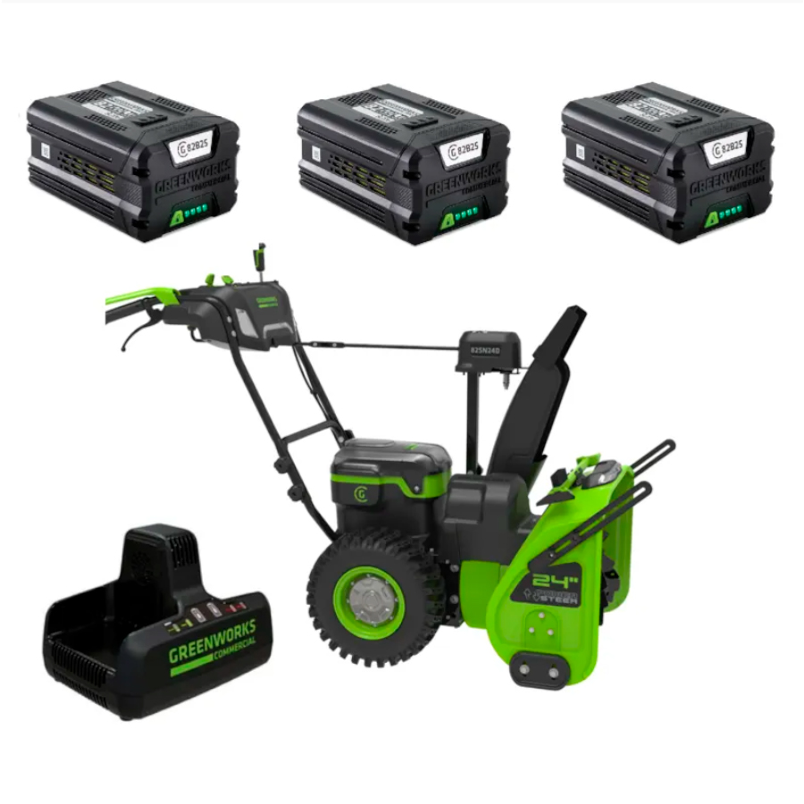 Снегоуборщик самоходный Greenworks 82V GD82ST56K2.5 с шириной сбора снега 61 см