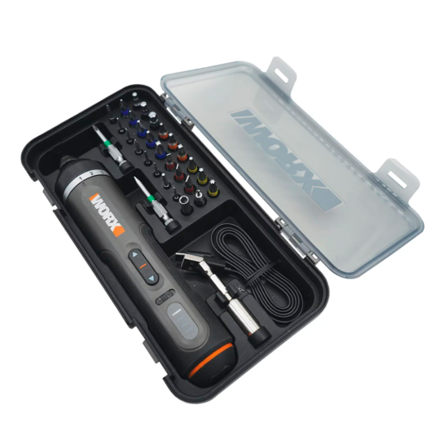 WX242 – это компактная и удобная аккумуляторная отвертка. Отлично подходит для выполнения мелких работ по дому. Наличие светодиодной подсветки позволяет работать в затемненных местах. Переключатель крутящего момента позволяет выбрать необходимы режим работы в зависимости от материала и крепежа. Индикатор заряда батареи укажет на необходимость зарядки. В комплекте с отверткой уже есть необходимый набор оснастки для работы с различным крепежом.