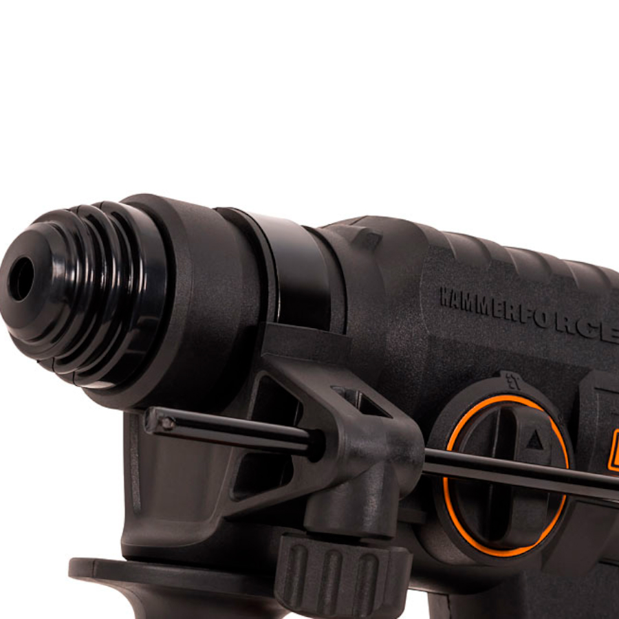 Универсальный перфоратор WORX WX381 совместил в себе сразу 3 режима работы: сверление, ударное сверление и долбление. Также предусмотрена возможность регулировки положения долота в патроне. Благодаря скорости вращения до 1350 оборотов в минуту и ударной энергии 2,0 Дж со скоростью до 4700 ударов в минуту, перфоратор помогает легко сносить стены и разбивать бетонные блоки. Инструмент может без усилий сверлить бетон толщиной до 22 мм, дерево толщиной до 28 мм и сталь толщиной до 13 мм.