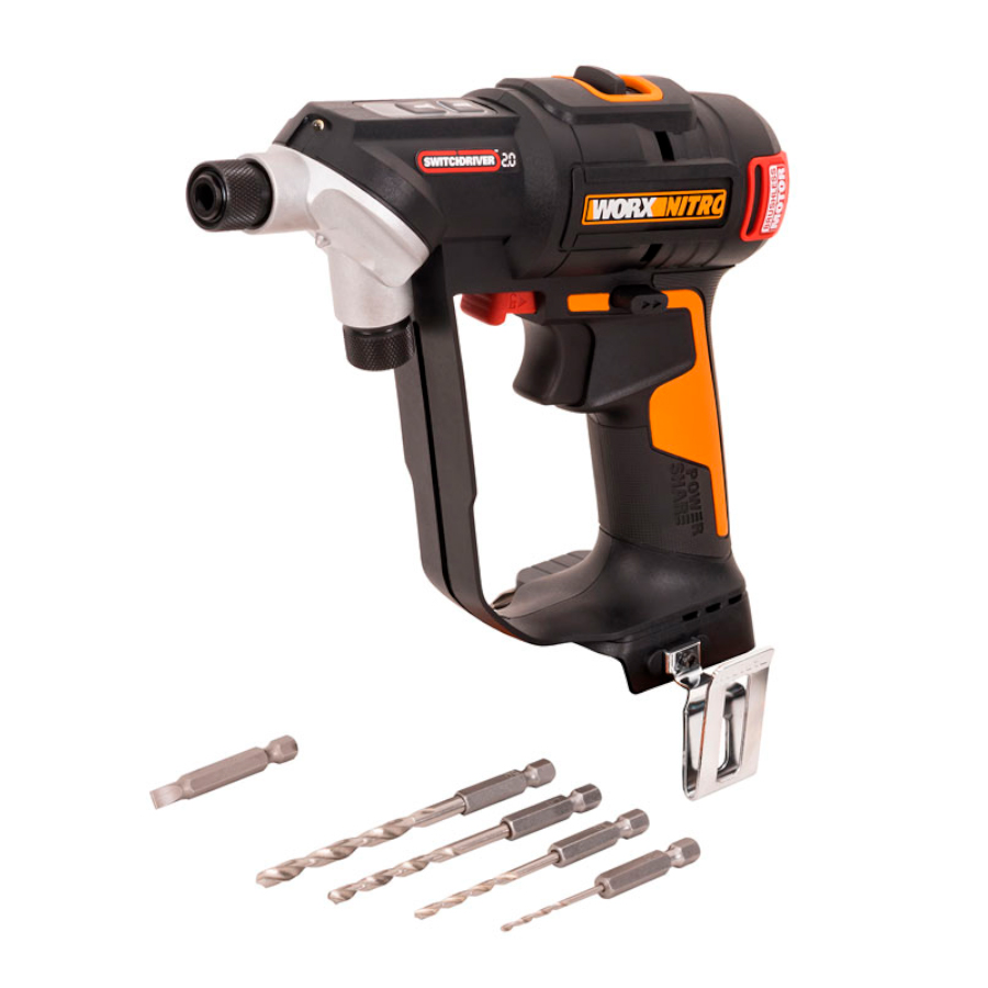WORX WX177 – Новый уникальный инструмент, совмещающий в себе функции дрели и шуруповерта. Компактная и легкая дрель оснащена технологией WORX Switchdriver 2.0, которая позволяет подготовить инструмент к сверлению или работе с крепежом простым поворотом головки.