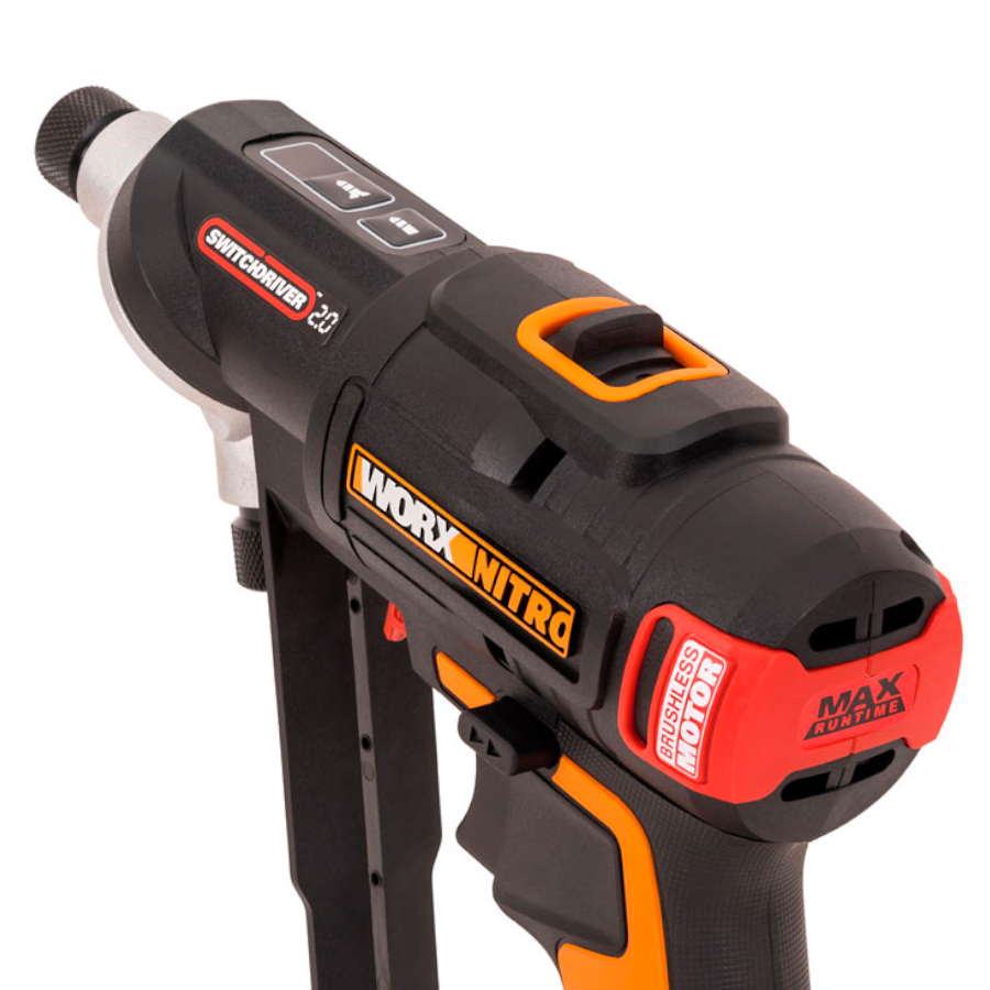 WORX WX177 оснащена поворотной головкой Switchdriver, включающей в себя сразу 2 патрона: один – для установки сверл, второй – для бит и работы с крепежом. Смена режима происходит моментально, что делает инструмент оптимальным решением для ремонтных и строительных работ. Стандартный патрон под шестигранник 6,35мм (1/4”) подойдет для большинства оснастки, представленной на рынке.