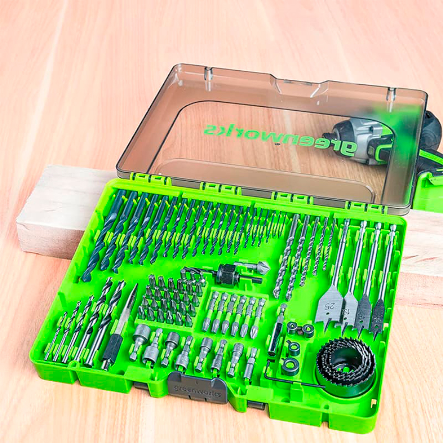 Набор сверл, бит и коронок в кейсе Greenworks 2944607 (90 шт.)