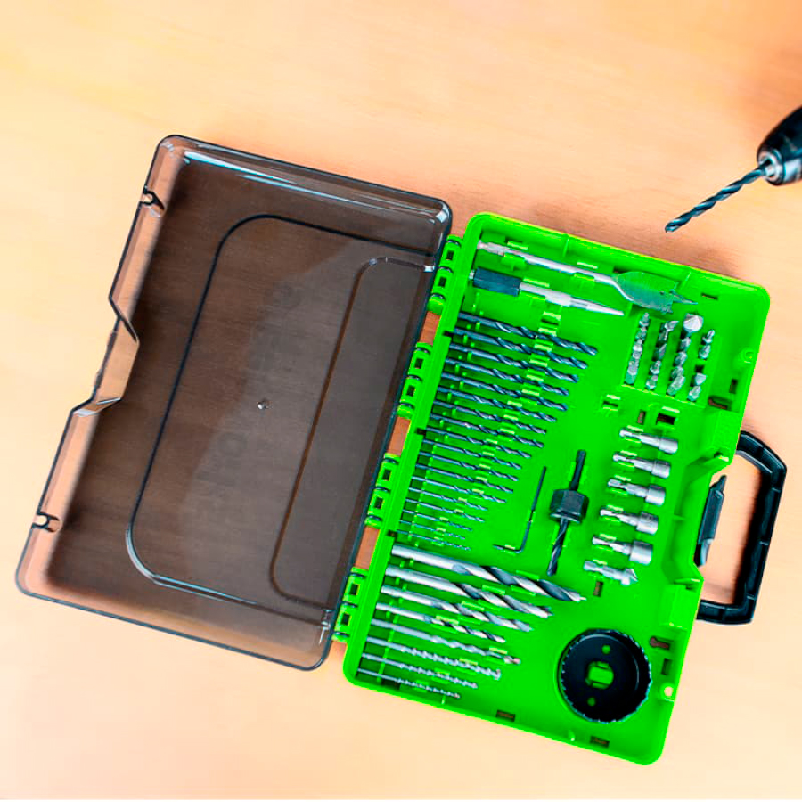 Набор сверл, бит и коронок в кейсе Greenworks 2944507 (60 шт.)