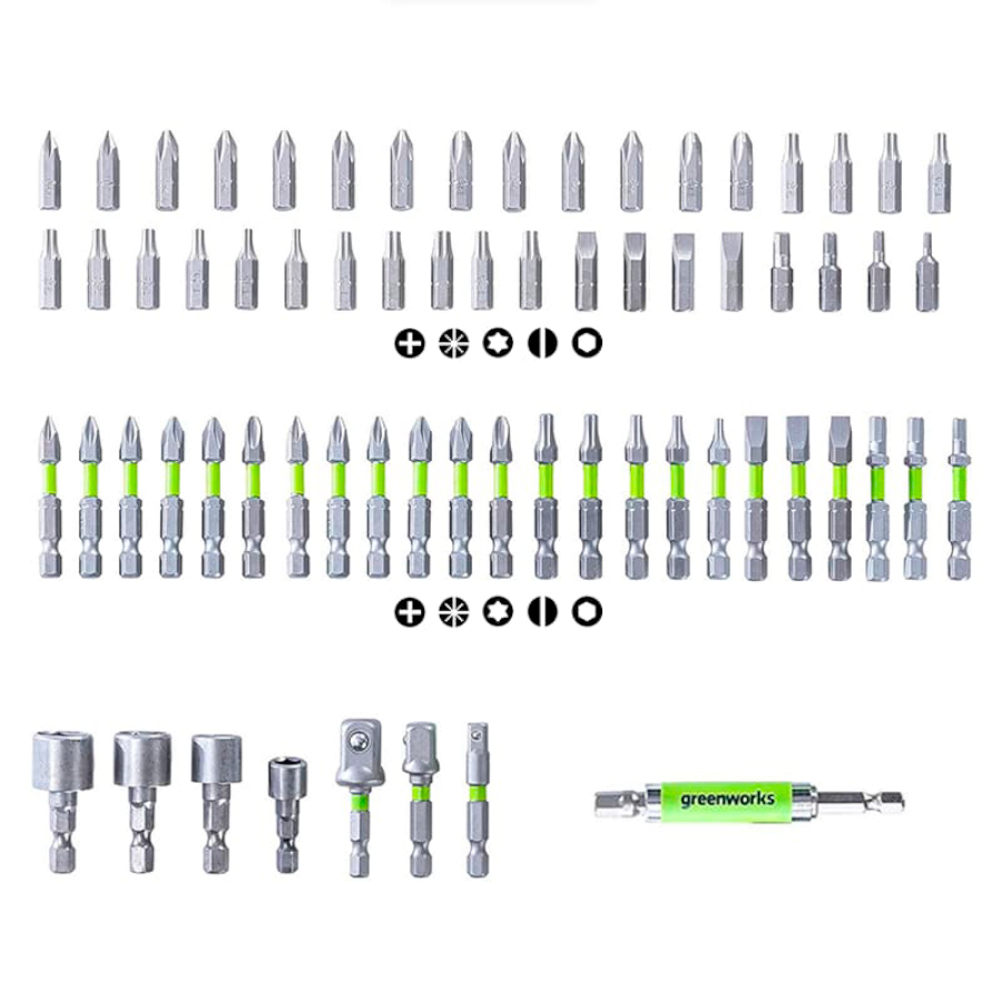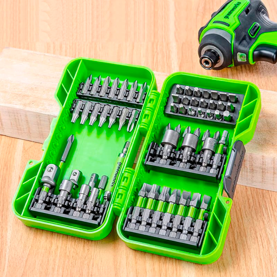 Набор бит, торцевых головок и адаптеров в кейсе Greenworks 2944407 (70 шт.)