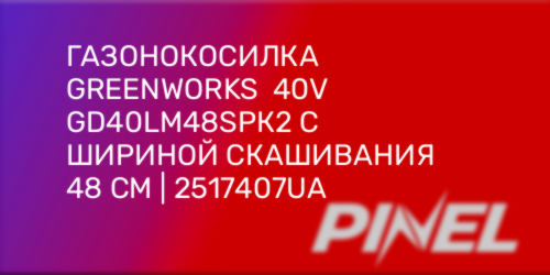 - Газонокосилка аккумуляторная Greenworks GD40LM48SP, 40V, 48 см, самоходная, бесщеточная, арт. 2517407;