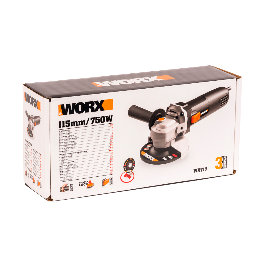 Угловая шлифовальная машина WORX WX717 работает от сети 220В и является универсальным решением для работы в мастерской. УШМ эффективно справляется с обработкой металлов и более мягких материалов. WORX WX717 оснащена современной антивибрационной системой, 2-х позиционной боковой рукояткой, быстрозажимной защитный кожух для максимального снижения нагрузки и полного контроля при длительной эксплуатации. Мощный электродвигатель 750 Вт обеспечивает скорость вращения диска до 11000 оборотов в минуту, что позволяет быстро шлифовать и подрезать металлы высокой плотности. Диск диаметром 125 мм легко справляется с большой обрабатываемой площадью. Алюминиевый корпус редуктора устойчив к высоким нагрузкам и перегреву, гарантируя большой ресурс инструмента. Электроинструменты WORX – это надежное и долговечное решение для частных мастеров и профессионалов. Резиновая рукоятка обеспечивает уверенный хват, а быстрозажимной защитный кожух предотвращает вылет металлической стружки в направлении оператора. Регулировка защитного кожуха осуществляется без использования дополнительных инструментов.