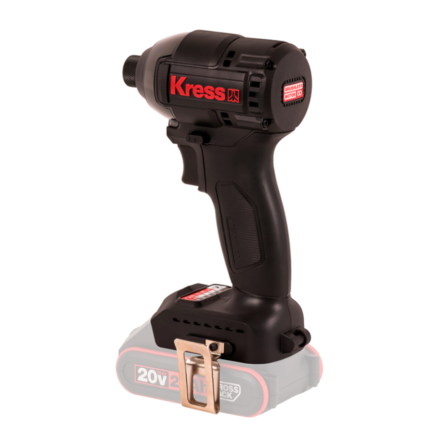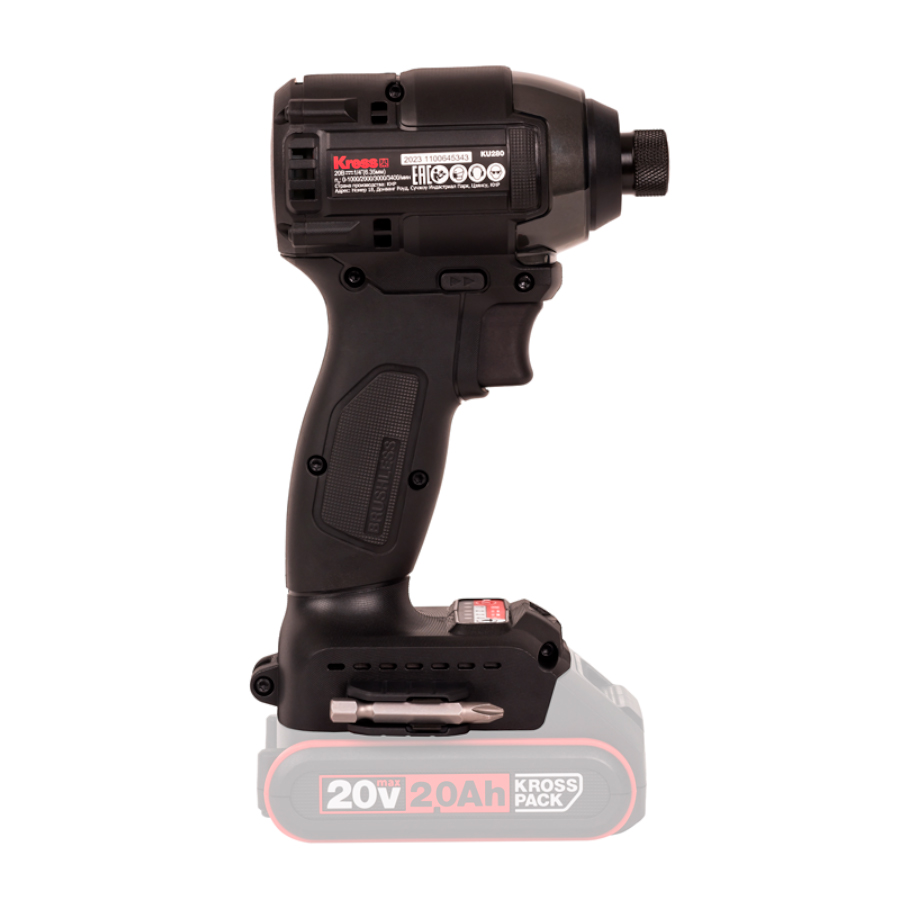 Винтоверт KRESS KU280.9 имеет шестигранный патрон 1/4 дюйма и оснащен инновационной системой с четырьмя рабочими режимами скорости, максимальный крутящий момент которых составляет 190 Нм. Также присутствуют четыре вспомогательных интеллектуальных режима. Винтоверт оснащен бесщеточным двигателем, что заметно повышает его характеристики по сравнению с моделями на щеточных моторах. Такой тип двигателя обеспечивает меньший нагрев, продолжительность работы на 50% больше и увеличивает крутящий момент на 25%. Кроме того, срок службы мотора увеличивается в 10 раз. Устройство оборудовано светодиодной подсветкой для освещения рабочей зоны. Легкий вес и компактные размеры обеспечивают лучший доступ к ограниченному пространству и удобную работу на весу.