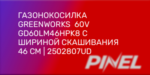 Газонокосилка Greenworks 60V GD60LM46HPK8 с шириной скашивания 46 см | 2502807UD