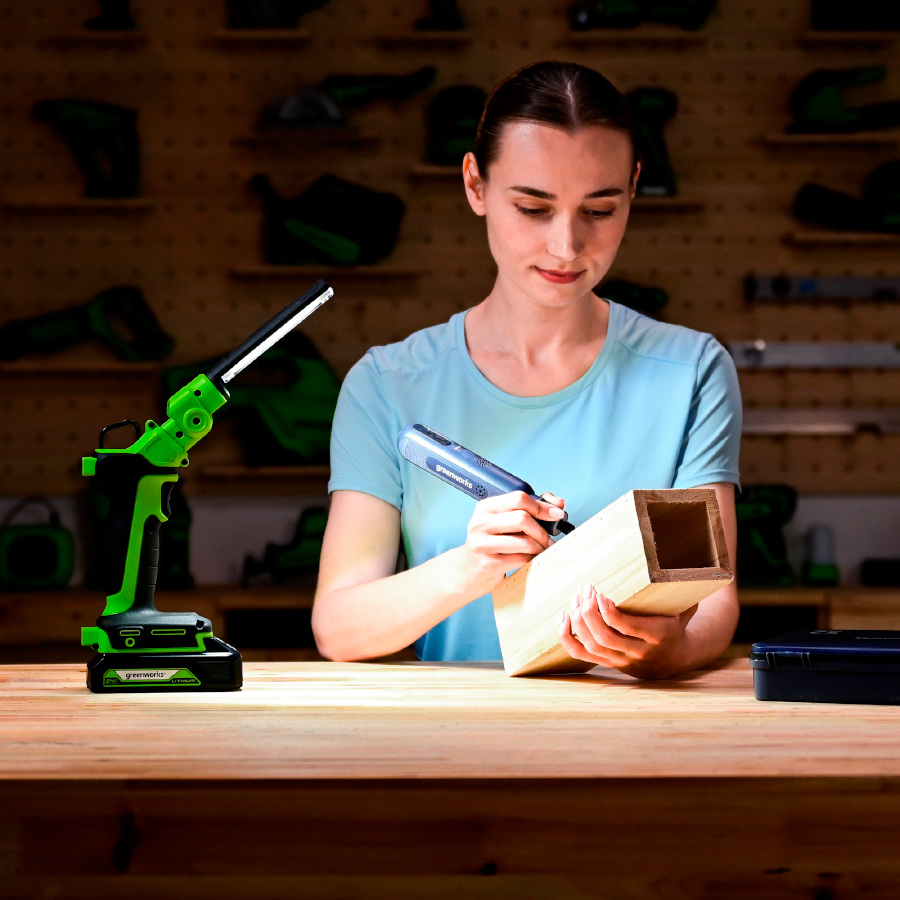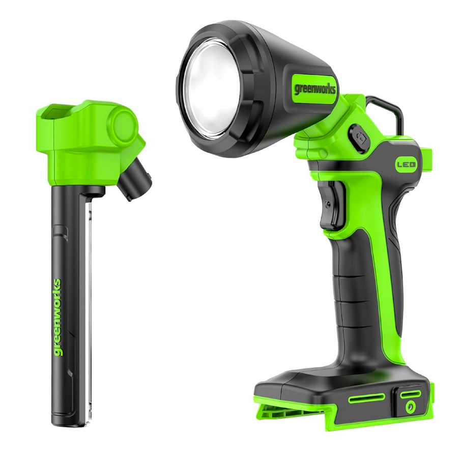 - Рабочий аккумуляторный LED-фонарь 2-в-1 Greenworks G24UL;