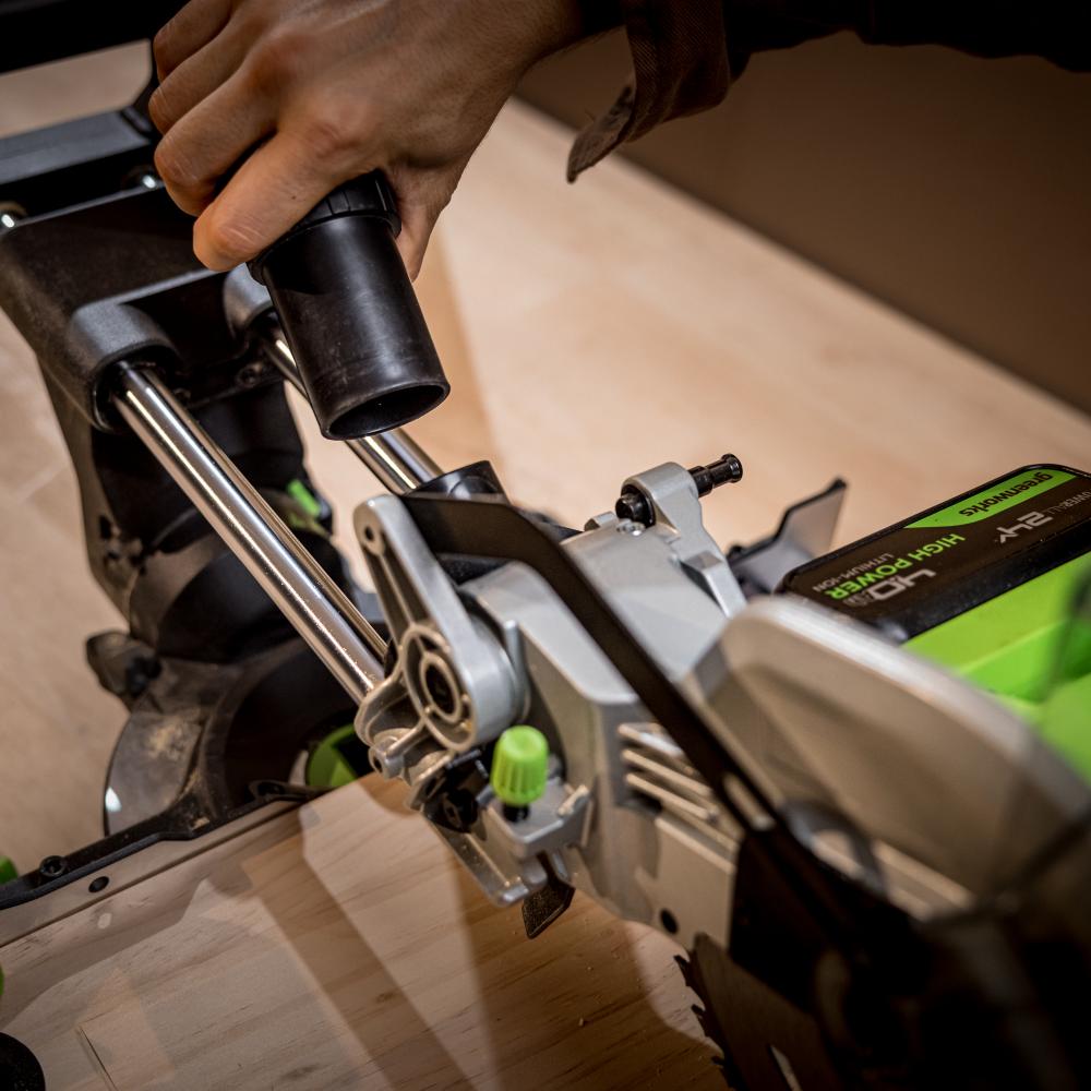 - Мобильная и производительная торцовочно-усорезная пила Greenworks GD24MS216 с функцией протяжки – лёгкая, точная и максимально удобная в эксплуатации.