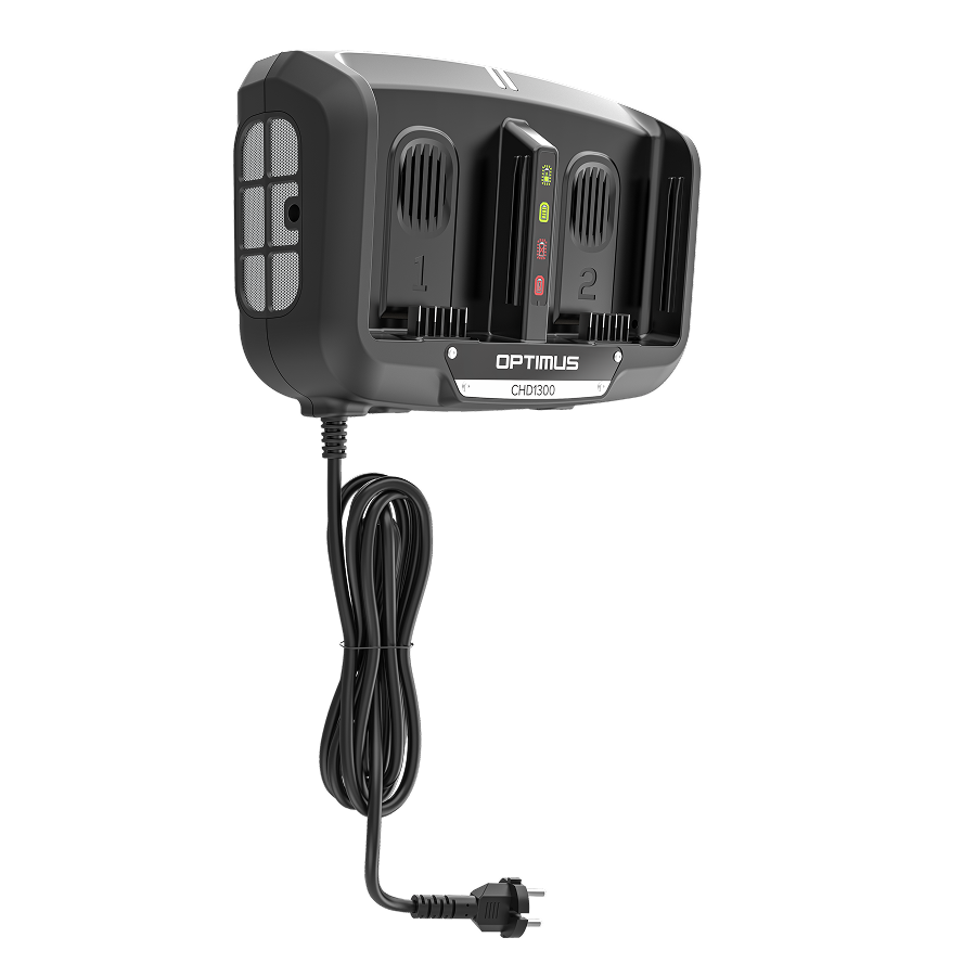 Ультрабыстрое двухпортовое зарядное устройство Greenworks CHD1300, 82V (2960507) предназначено для работы со всеми аккумуляторными батареями Greenworks 82V.