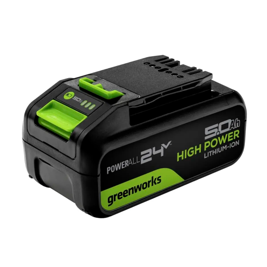 Модель работает от аккумуляторной батареи 24V, совместимой со всеми устройствами Greenworks 24V. Это самая легкая и бюджетная линейка техники Greenworks, в которой представлены инструменты для любых бытовых работ.