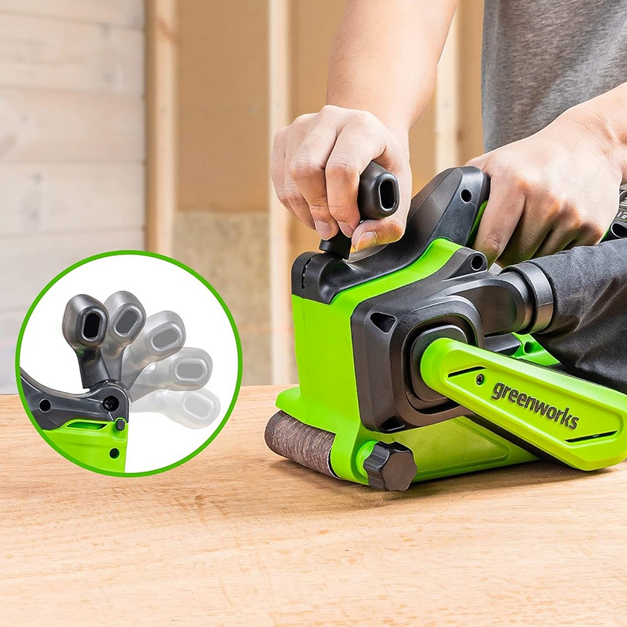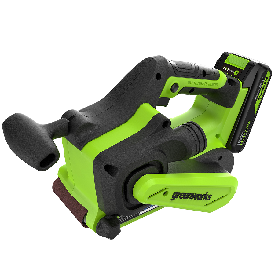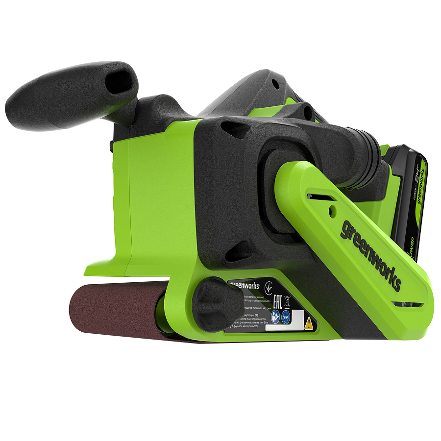 - Ленточная шлифовальная машина бесщеточная аккумуляторная Greenworks 24V, арт. 3100607;