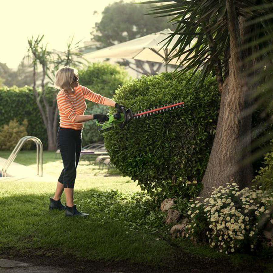 Преимущества аккумуляторного кустореза Greenworks G40HT61: