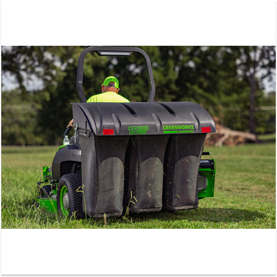 Оригинальный травосборник для аккумуляторного садового трактора Greenworks ZTC152 с нулевым радиусом поворота (арт. 7405107).