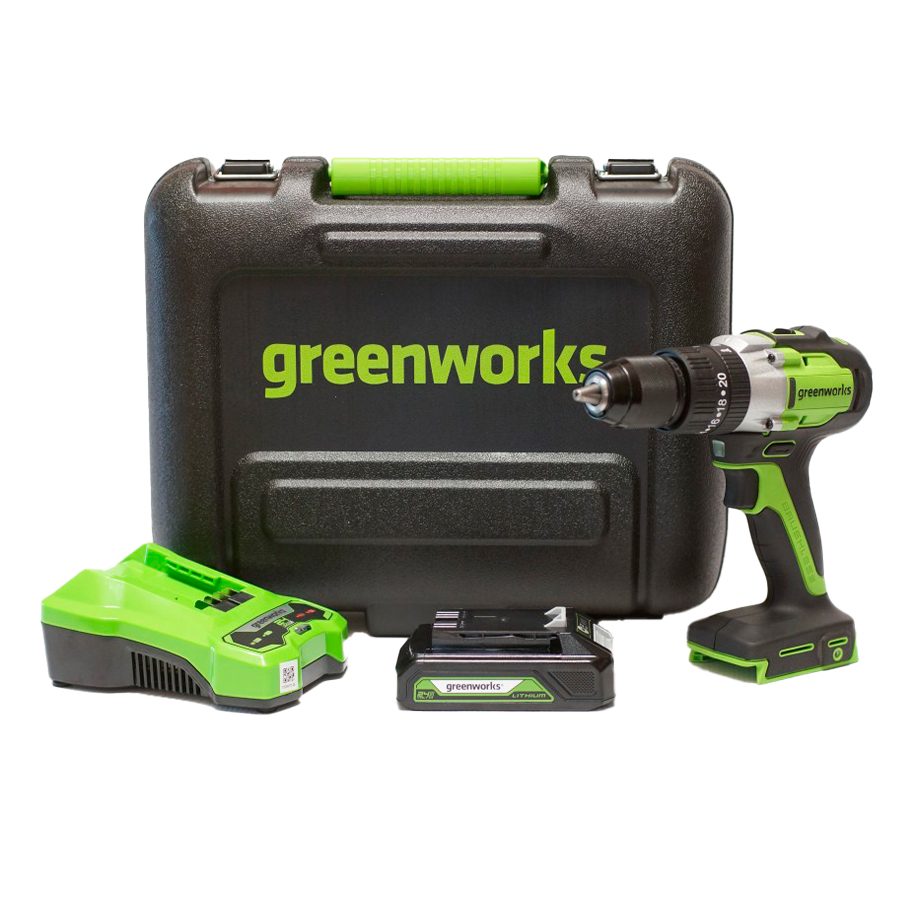- Дрель-шуруповерт ударная аккумуляторная Greenworks GD24DD60 24V артикул 3704107;