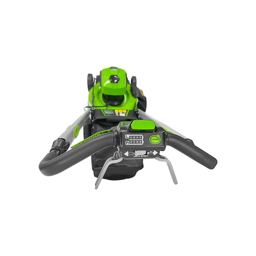 Газонокосилка аккумуляторная Greenworks GD40LM48SP, (артикул 2517407), 40V, 48 см, самоходная, бесщеточная, без АКБ и ЗУ - это мощная, универсальная и практичная самоходная газонокосилка из линейки 40V. Аккумуляторный инструмент по сравнению с бензиновым прост в эксплуатации (не нужна топливно – масляная смесь), включается одной кнопкой, абсолютно экологичен, работает гораздо тише, отличается низким уровнем вибрации. Обладает низкой стоимостью эксплуатации – только затраты на электроэнергию. При этом мощность сопоставима с бензиновыми аналогами. Данная модель оснащена надежным инновационным бесщёточным двигателем DigiPro с высоким крутящим моментом, еще более низким уровнем шума, чем у стандартных электрических двигателей. Газонокосилка имеет привод на задние колёса. Скорость движения регулируется в диапазоне 2,5-4,9 км/ч, что важно при обработке больших участков различного профиля. Длительная непрерывная работа обеспечивается функцией Switchover. В батарейный отсек устанавливаются сразу два аккумулятора. После разрядки первого происходит автоматическое переключение на второй. Но, в то же время, установка сразу 2-х батарей не обязательна. При работе на участке с густой травой, Вы можете нажать клавишу Turbo на рукояти газонокосилки. При нажатии и удержании клавиши обороты двигателя повышаются до 3100 оборотов в минуту, что позволяет выкосить особенно сложные участки. Обратите внимание, что использование Turbo, приводит к повышенному потреблению энергии аккумулятора. Большая ширина скашивания 48 см позволяет обрабатывать площадь до 900 м2. Особая система складывания рукоятки, позволяет быстро сложить газонокосилку и хранить ее вертикально, что позволит Вам экономить пространство. Данная модель оснащена функцией 3-в-1: мульчирование, сбор травы в травосборник и боковой выброс. Вместительный травосборник объёмом 55 литров продлевает время непрерывного кошения. Регулировка высоты кошения в диапазоне от 25 до 80 мм (7 уровней) осуществляется централизованно одной ручкой.