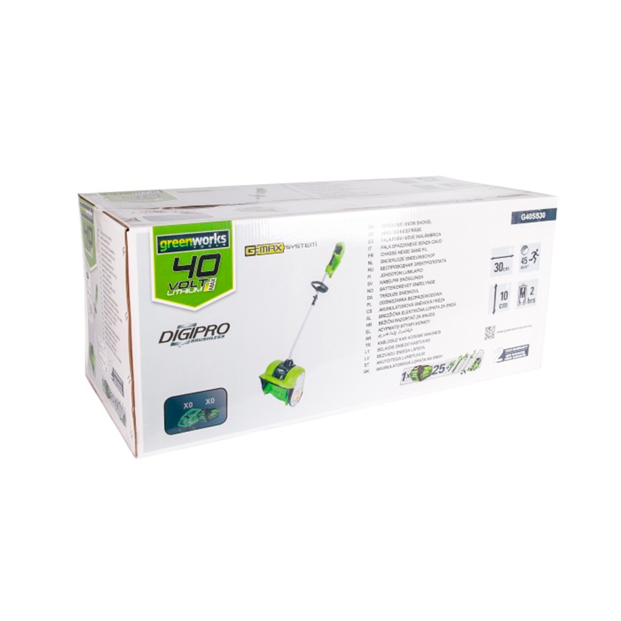 Снегоуборщик снеголопата Greenworks 40V GD40SS с шириной сбора снега 30 см