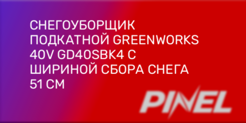 Снегоуборщик подкатной Greenworks 40V GD40SBK4 с шириной сбора снега 51 см