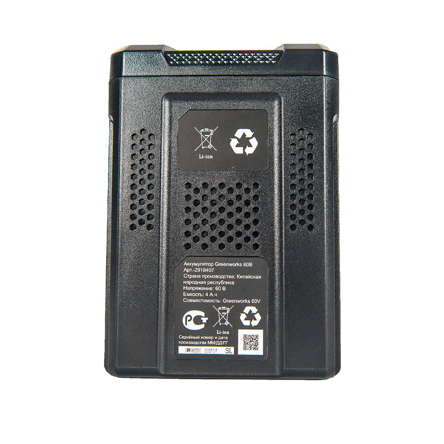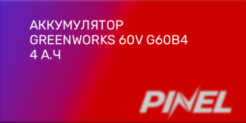 - Аккумулятор Greenworks G60B4, 60V, 4 A*ч, (арт.2918407)