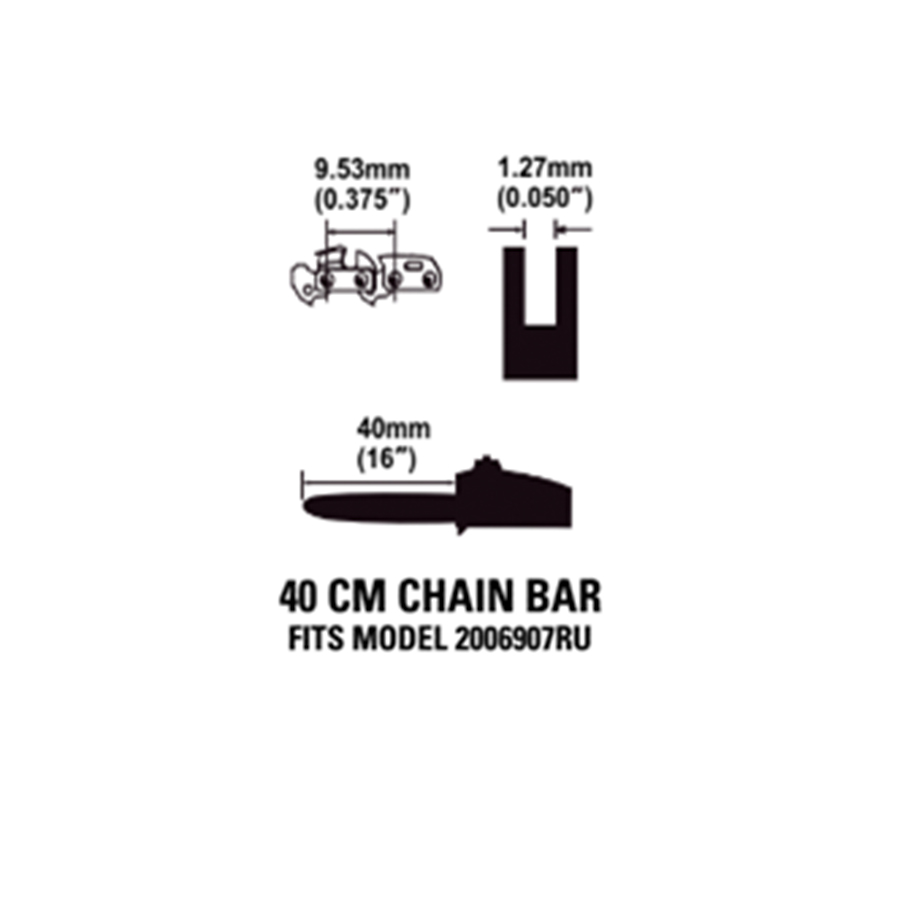 Длинна шины 40 см (16"), Паз 1,27 мм (0,05"), Шаг 9,3 мм (0,375"(3/8")).
