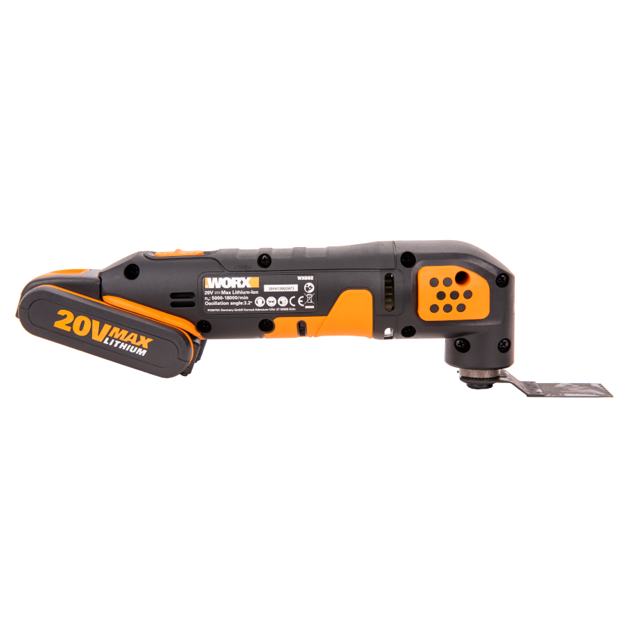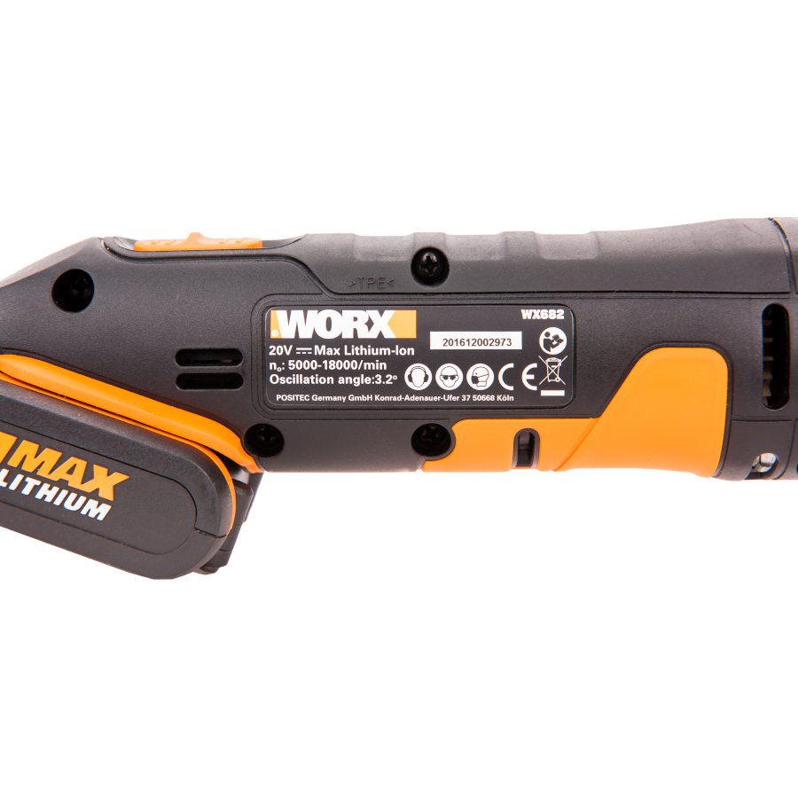 В переводе осцилляция — раскачивание, качание. Рабочие насадки не вращаются вокруг своей оси (как у дрели, болгарки или пилы), а лишь раскачиваются немного (в данном случае на 3,2 градуса), т.е. совершают очень частные колебания из стороны в сторону (5000 – 18000 колебаний/мин). К такому типу инструмента на сегодня существует более 50 видов различных насадок. Универсальное посадочное место позволяет использовать насадки других брендов, а система Hyperlock ™ позволит быстро и надежно (без использования дополнительного инструмента) менять насадки на инструменте. Поставляется в комплекте с одним аккумулятором WORX POWERSHARE® 20 В 2,0 А*ч, который взаимозаменяем с другими инструментами и садовой техникой WORX. Аккумуляторы WORX оснащены электронной платой управления с защитой от глубокого разряда и перегрева, что продлевает срок службы и увеличивает время работы. Данная модель поставляется в кейсе, с аккумулятором и зарядным устройством и набором аксессуаров.