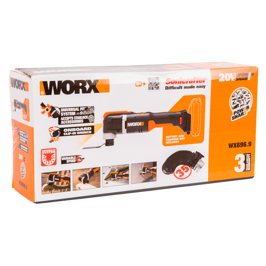 - Powershare Работая от универсального аккумулятора WORX Powershare, реноватор гарантирует свободу перемещения и является отличным решение для выездных работ. Аккумуляторы серии Powershare 20В совместимы со всеми инструментами WORX в линейке вольтажа и оснащены электронной платой защиты от глубокого разряда.