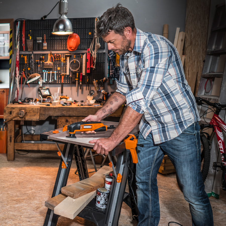 Складной рабочий стол позволяет экономить место в мастерской и требует минимум времени для сборки. Быстрые встроенные зажимы надежно фиксируют стол в разобранном положении, предотвращая раскачивание. Универсальные зажимы совместимы с другими инструментами WORX.Универсальность