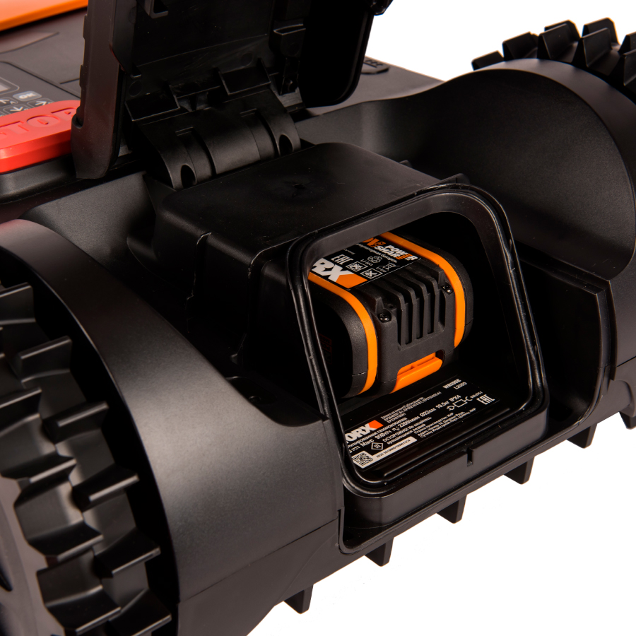 WR155E – представитель линейки самых больших роботизированных косилок Worx Landroid. Модель рассчитана на обслуживание участка площадью до 2000 м²: для того, чтобы быстро постригать такую лужайку, она дополнена интеллектуальной системой навигации и расширенной до 220 мм рабочей частью. Управлять роботом практически не нужно: достаточно включить его и задать рабочую зону. Для контроля за эффективностью скашивания и состоянием газона стоит установить на смартфон бесплатное приложение (подходит для iOS и Android). Косилка обновляет программное самостоятельно по Wi-Fi. WR155E без проблем стрижет не только ровные лужайки, но и холмы со склонами до 35%. Непосредственная рабочая часть – трехлезвийный нож – выполнен из прочной и долговечной стали. Он дополнен режущей кромкой, которая позволяет обрабатывать края газона, не оставляя травинок вдоль клумб и бордюров (технология Cut to Edge). Высота кошения регулируется в пределах от 30 до 60 мм, что позволяет ухаживать за газонами на основе разных видов травы. Главный агрегат косилки представлен бесщеточным электродвигателем нового поколения. При его создании используются те же технологии, что и при производстве электромобилей. Поддержка системы Worx PowerShare – аккумулятор от газонокосилки полностью совместим с другими беспроводными приборами и инструментами Worx. Система Side Charge – благодаря тому, что контакты зарядки расположены сбоку (справа), подъезжая к док-станции, газонокосилка выкашивает траву сзади и спереди от нее, не оставляя «слепых зон». За счет технологии AIA (Алгоритм Искусственного Интеллекта) робот не «тормозит» даже в узких местах и способен косить в коридоре шириной 1 м. Кроме того, навигация при помощи искусственного интеллекта позволяет ему быть самой быстрой роботизированной газонокосилкой на сегодняшний день, скашивая на 30% больше травы (по площади) за одинаковое с аналогами время. Мультизональное программирование – для разных участков лужайки можно внести индивидуальные настройки кошения в зависимости от их назначения или состояния. Система PowerShare – батарея от газонокосилки подходит для другой техники Worx и наоборот. Главное, чтобы совпадал вольтаж. Свободная конфигурация – косилку можно дополнить одним или несколькими модулями: голосовое управление, установка закрытых зон, отслеживание по GPS, ультразвуковой датчик препятствий, усилитель сигнала Wi-Fi.