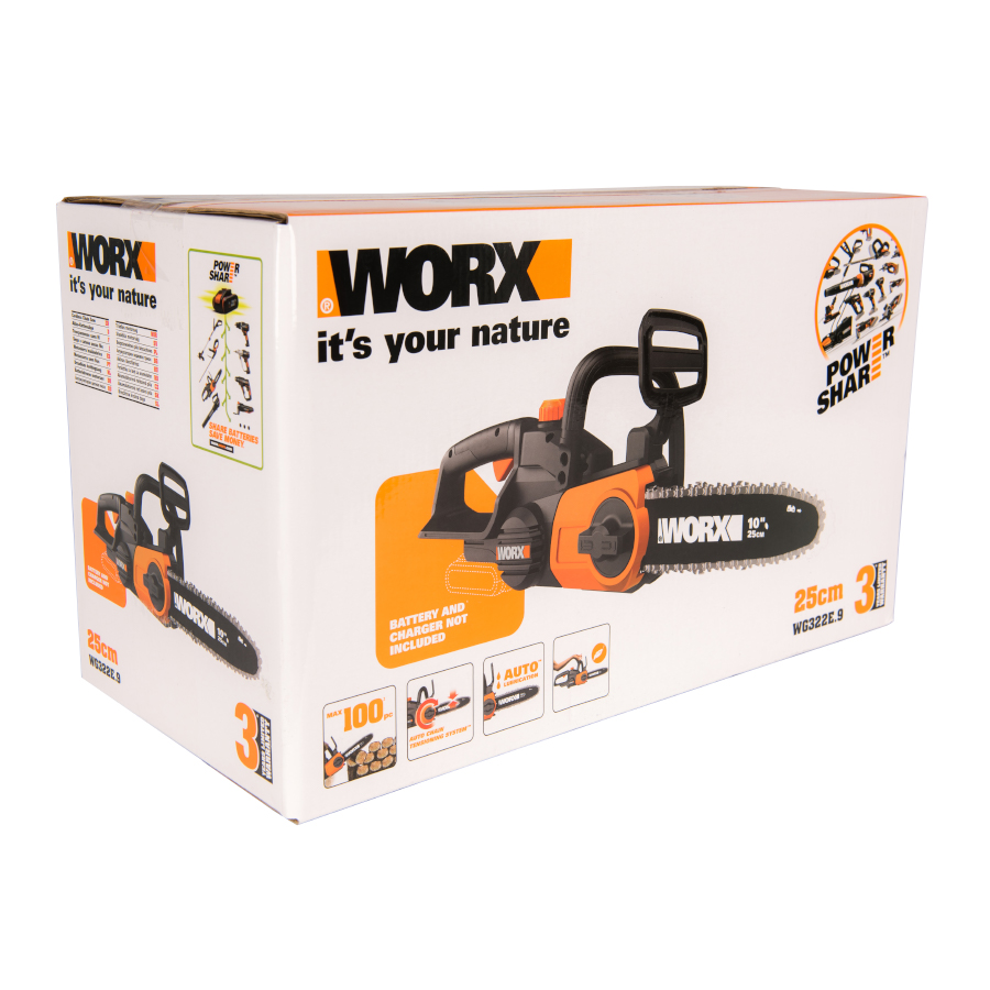 Пила цепная Worx 20V WG322E.9 с шиной 250 мм.
