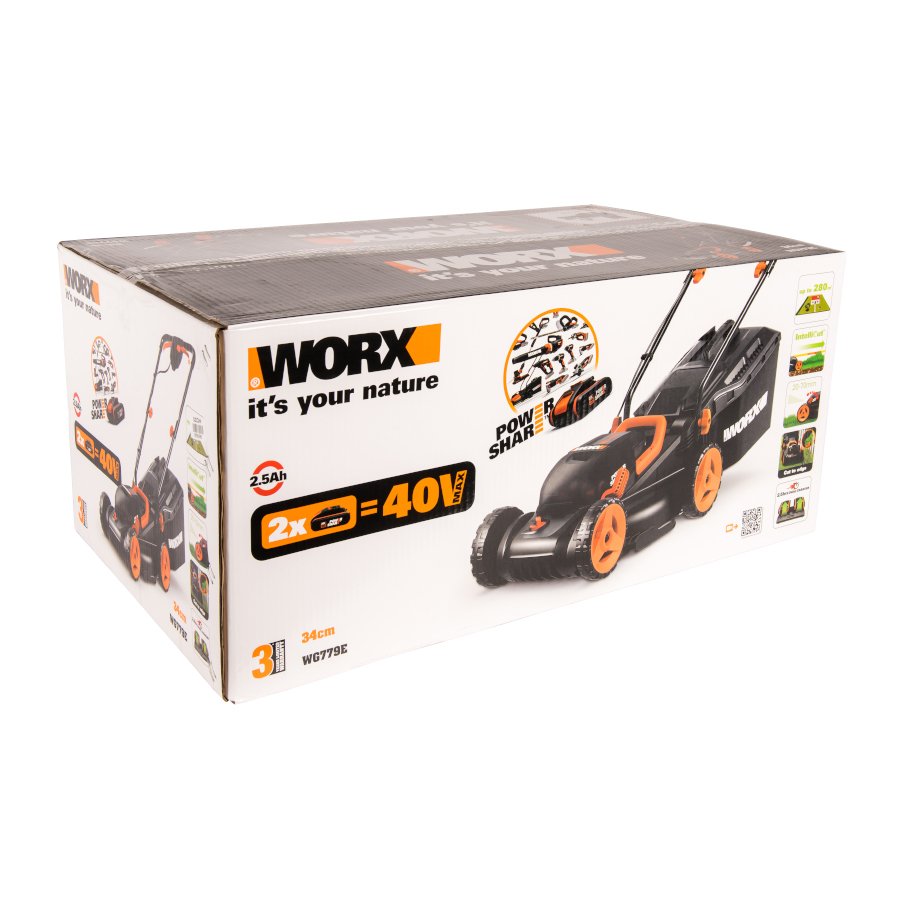 Газонокосилка Worx 20V WG779E с шириной скашивания 34 см | WG779E