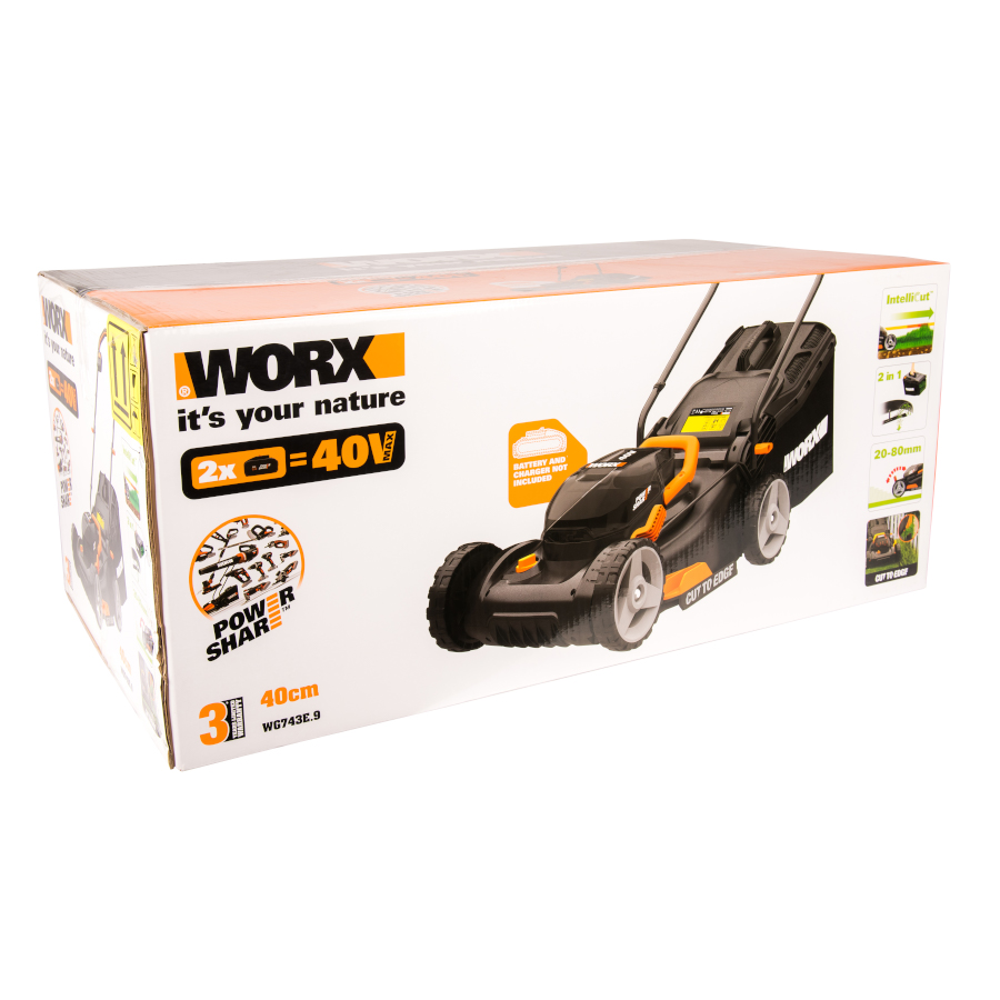 Газонокосилка Worx 20V WG743E.9 с шириной скашивания 40 см | WG743E.9