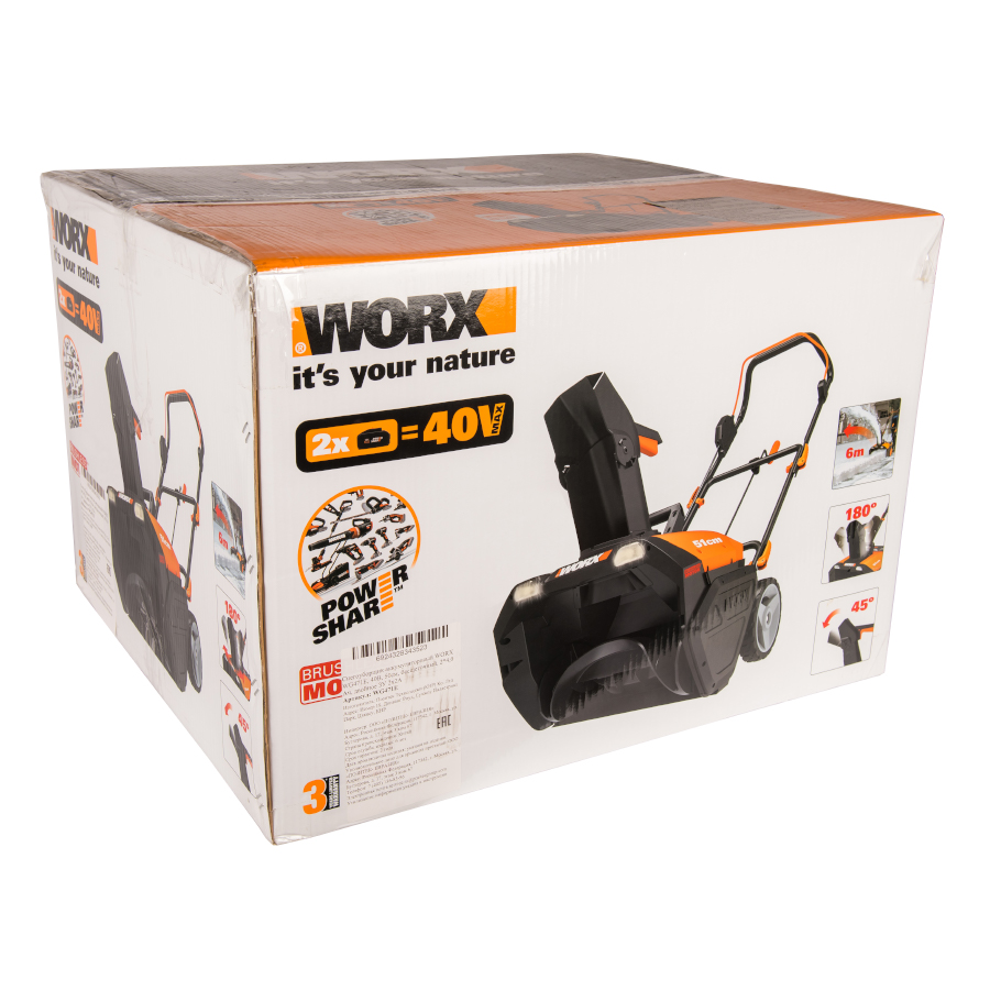 Снегоуборщик подкатной Worx 40V WG471E с шириной сбора снега 50 см