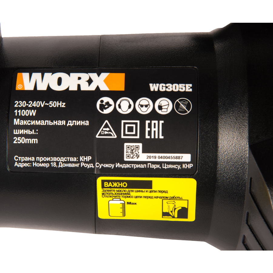 Пила цепная Worx 220V WG305E с шиной 250 мм.